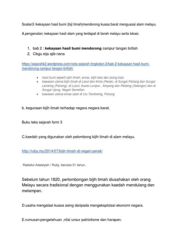 Pdf Soalan 6 Ekonomi Kapitalis Terutamanya Dalam Bijih Timah Telah Mengubah Lanskap Politik Dan Sosio Ekonomi Di Malaysia Bincangkan Hasbullah Salleh Academia Edu